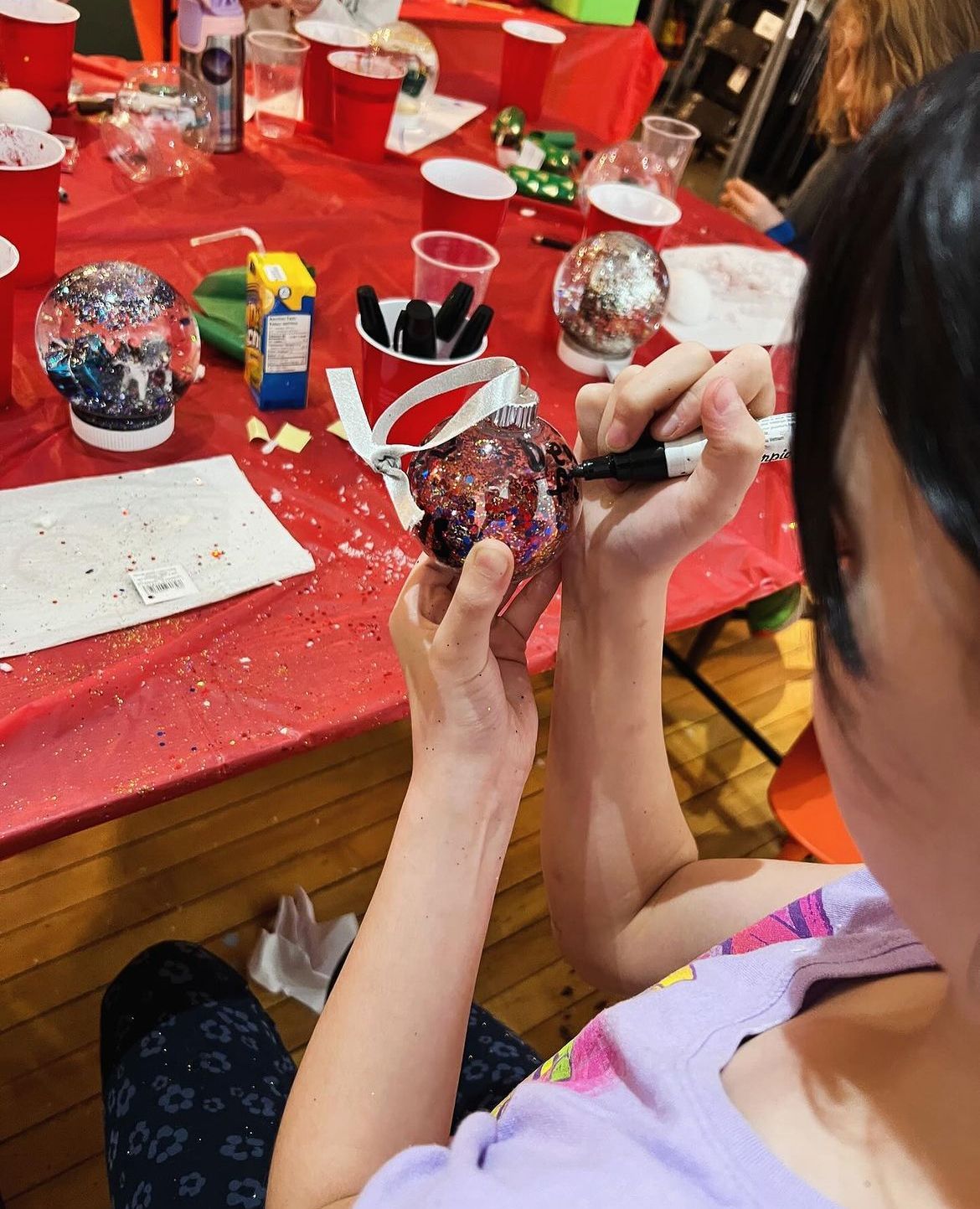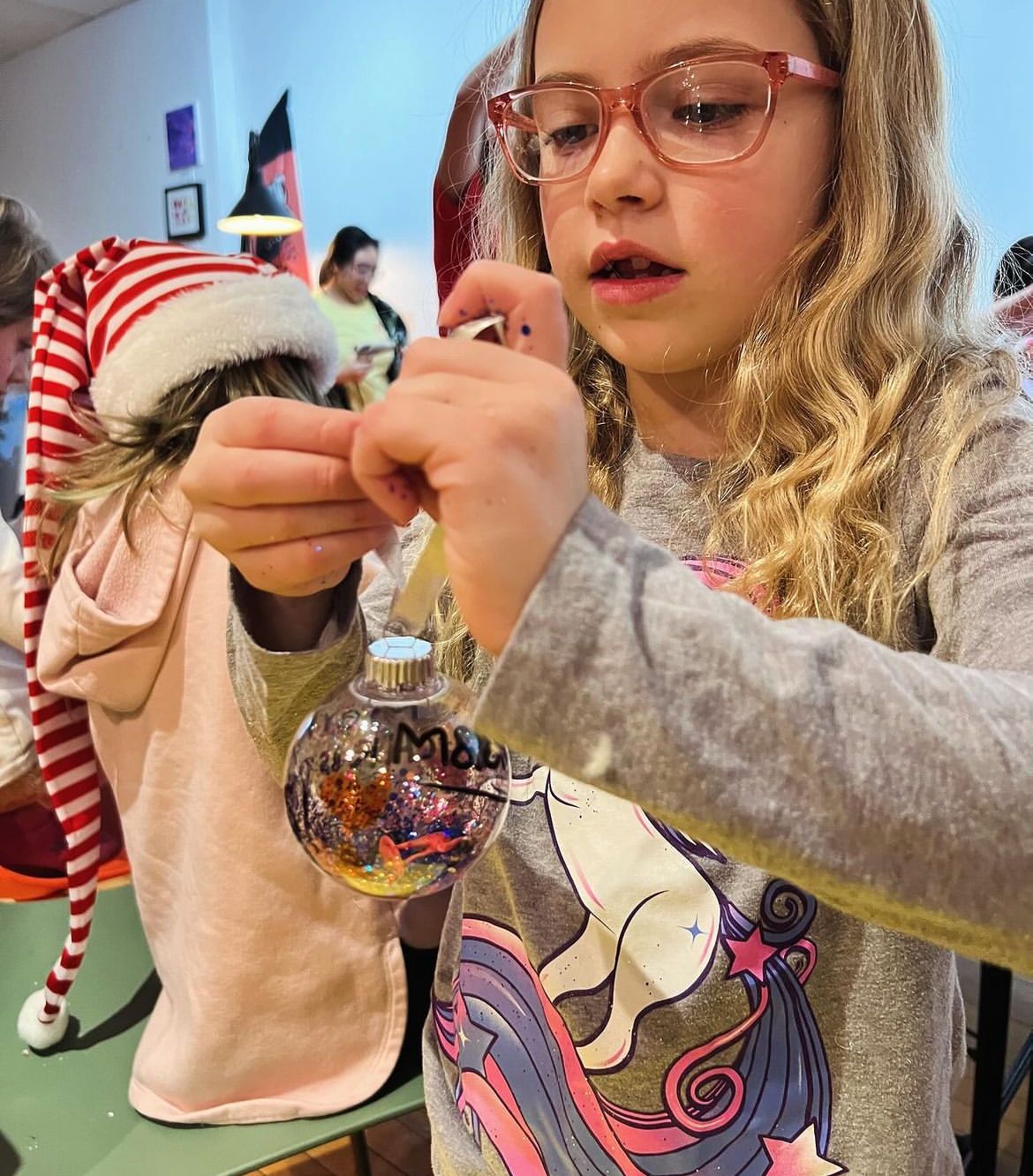 Once they had finished their snow globes the group of little artists adorned custom ornaments with colours, sparkles, and holiday magic. The atmosphere was electric with creativity as children explored different themes, from traditional Christmas symbols to imaginative winter landscapes.