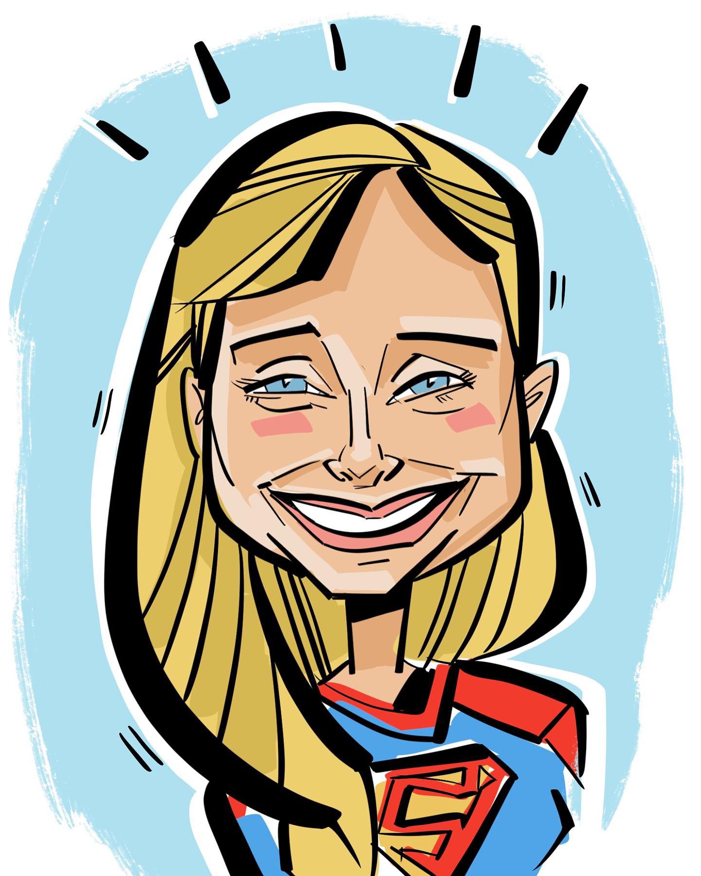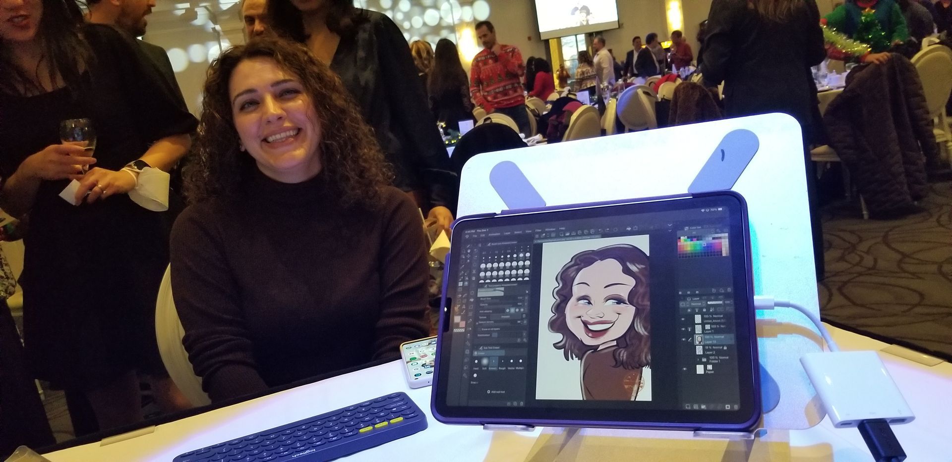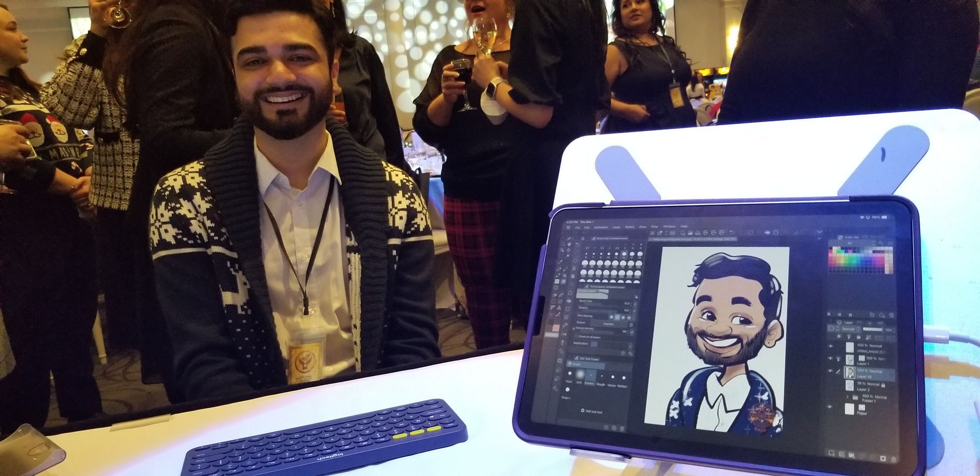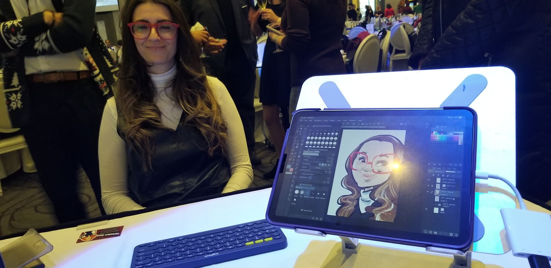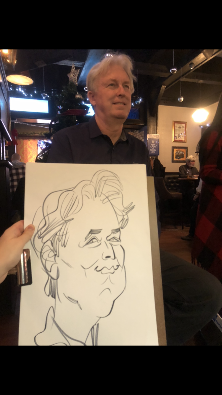 What materials do you use?: Caricatures are created in full colour on my iPad Pro, and can be printed on high quality 4x6 glossy photo paper and/or directly emailed to the guest - it makes the perfect profile pic! I can roam the crowd or remain stationary.