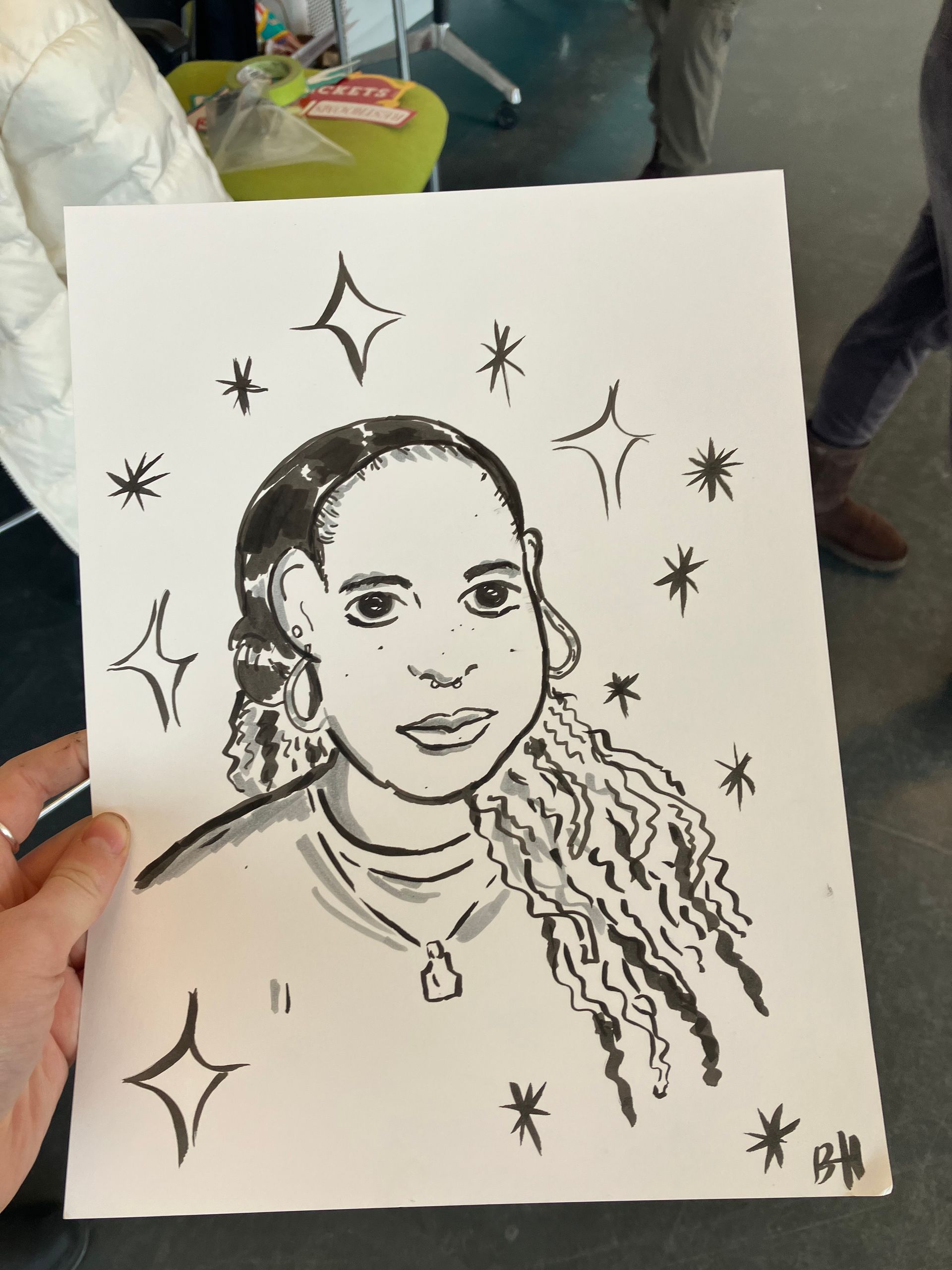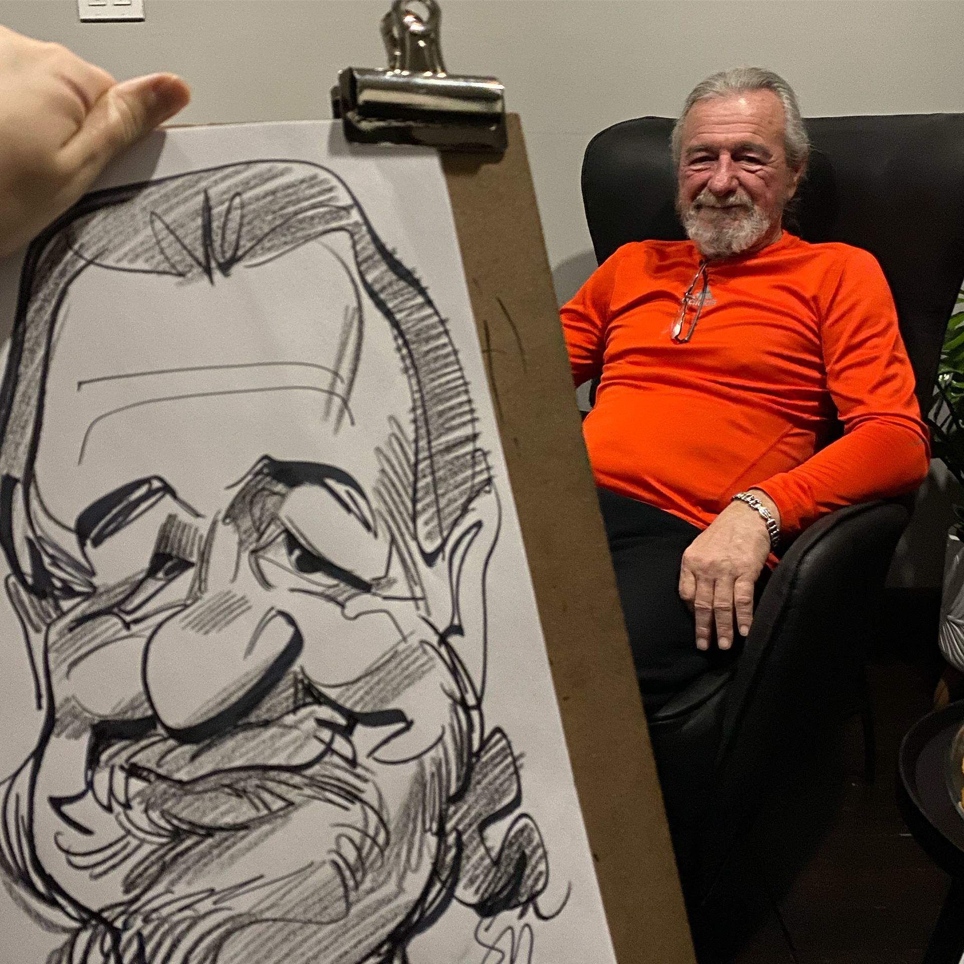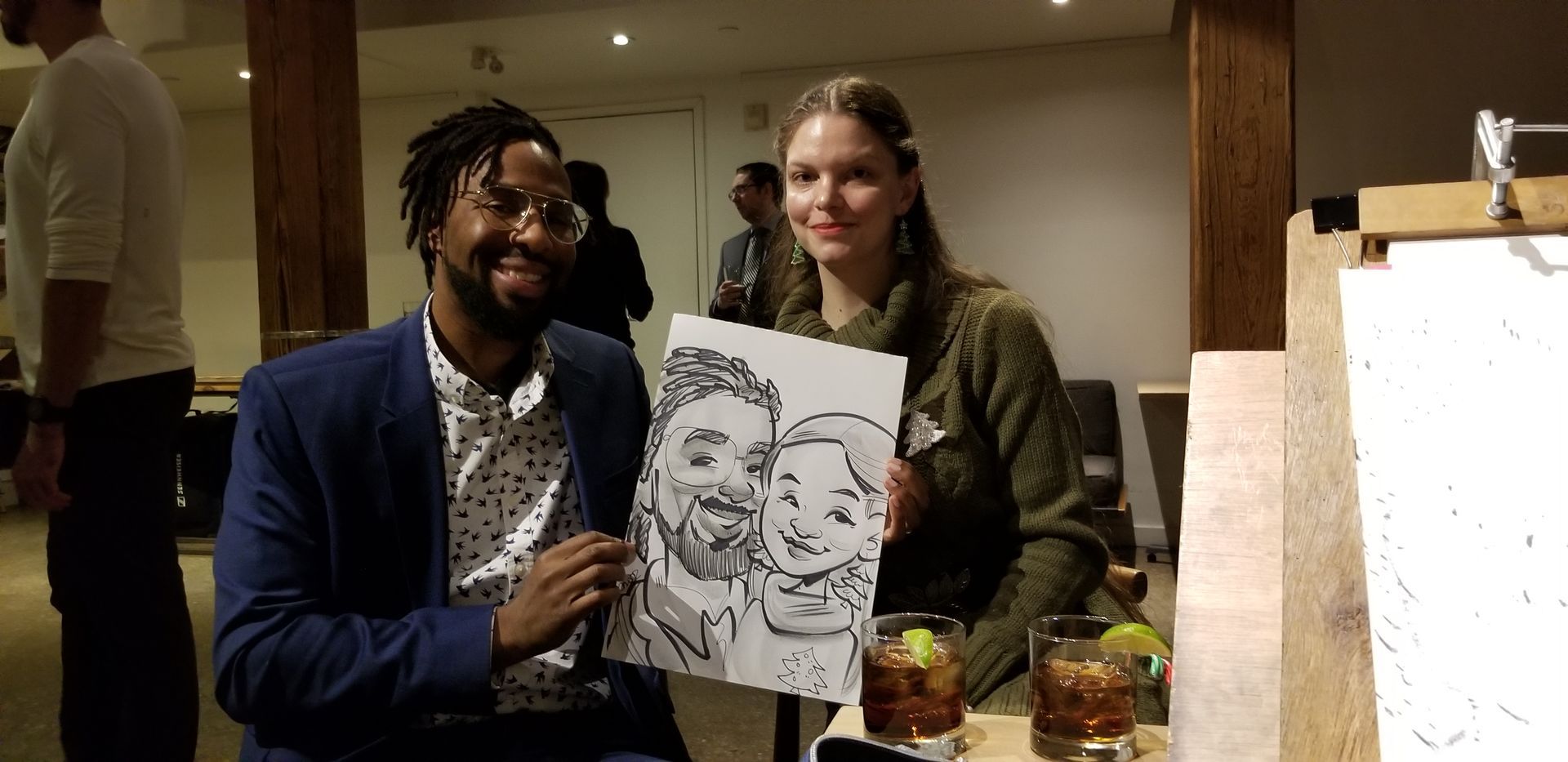 What materials do you use?: Caricatures are drawn on good quality 11x17 paper with b/w sharpie.(incl. in fee)