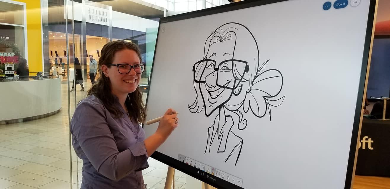 Sara is an artist based in the Greater Toronto Area and has always had a proclivity for the visual arts. Early on, Sara enrolled in various arts classes and competitions, and graduated from both Ontario’s Regional Arts Program as well as the celebrated Animation Program at Sheridan College, earning many accolades over the years for her work. She happened to pick up caricature when landing her first job as a teen at Canada's Wonderland, and has since loved the craft. Alongside her career in animated television, she has continued to draw caricatures professionally for well over a decade. Sara typically draws at parties, corporate events, trade shows, weddings, and wherever caricatures can make people smile. Outside of that, you'll find her poking around somewhere outdoors, or hanging out with her cat, Mango and a good book.