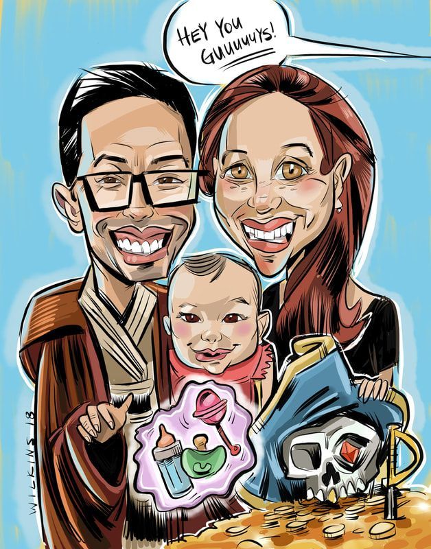 What's being drawn?: depending on time allowed, I may be able to draw full body caricatures, but usually head and shoulder. I can also place your company logo, event hash tag, catch phrase, at the bottom of each caricature.